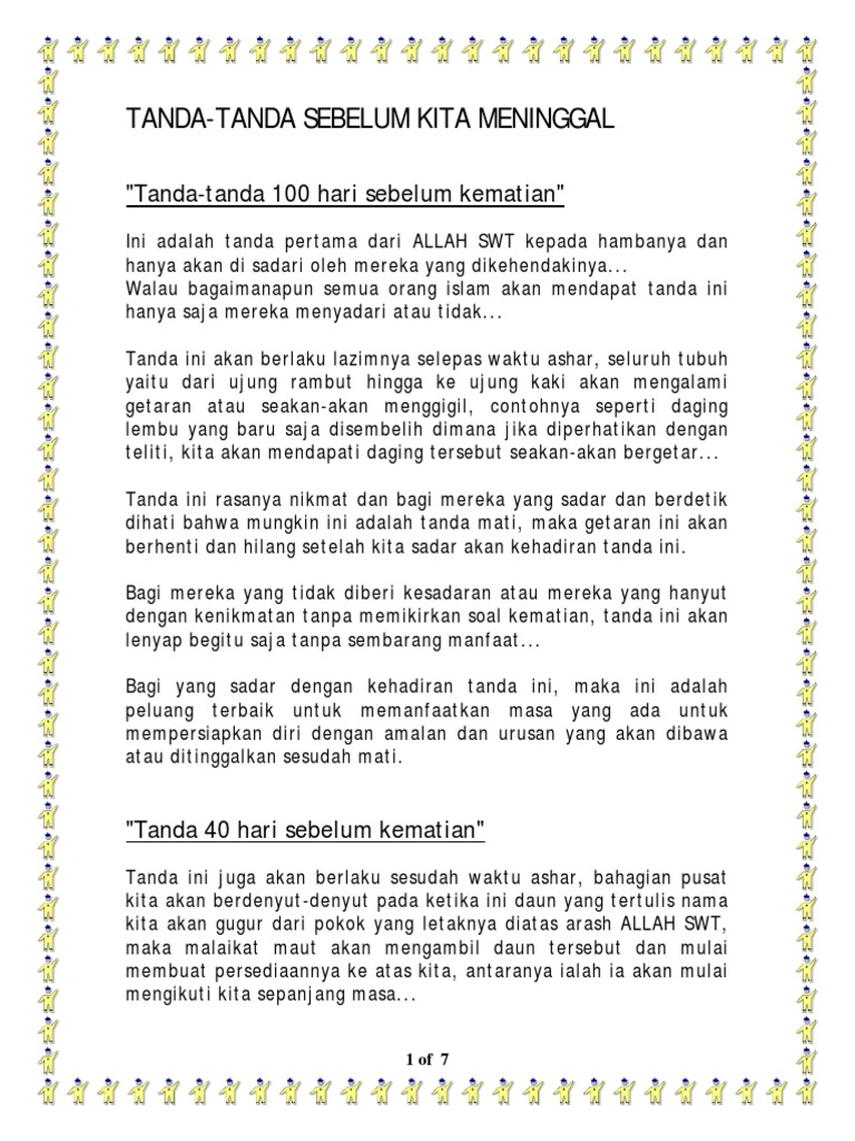 Tanda tangan merupakan salah satu bentuk dari tulisan tangan seseorang, sehingga karakter seseorang pun dapat dilihat dan dianalisis melalui tanda tangannya. Tanda tanda jodoh apa sudah kamu rasakan dengan dia ? Tanda koma adalah tanda baca yang memiliki bentuk mirip apostrof atau tanda petik tunggal tapi diletakkan di garis dasar teks. Beberapa jenis huruf menggambarkannya sebagai suatu garis kecil yang agak melengkung atau kadang lurus, atau seperti angka sembilan yang diisi bagian lubangnya. Bersabda, imam mahdi akan keluar di akhir umatku. Tanda petik ini berfungsi sebagai yang berbeda dengan tanda petik tunggal, tanda petik dua merupakan tanda petik yang berfungsi untuk. Maka seperti kata rasulullah, taubat akan diterima sebelum matahari terbit dari tempat terbenamnya. Kedua tanda tersebut adalah tanda kiamat sugra (tanda kiamat kecil) dan tanda kiamat kubra (tanda kiamat besar). Salah satu tanda ini yang dimaksud adalah berdenyut pada dahi. Keguguran adalah kematian janin dalam kandungan sebelum usia kehamilan mencapai 20 minggu. إِذَا أَرَادَ الله بعبدِهِ الخَيرَ عَجَّلَ لَهُ العُقُوبَةَ في الدُّنْيا. Nabi muhammad diutus ke dunia adalah tanda dekatnya hari kiamat. Kram perut adalah tanda tanda akan haid yang paling khas.